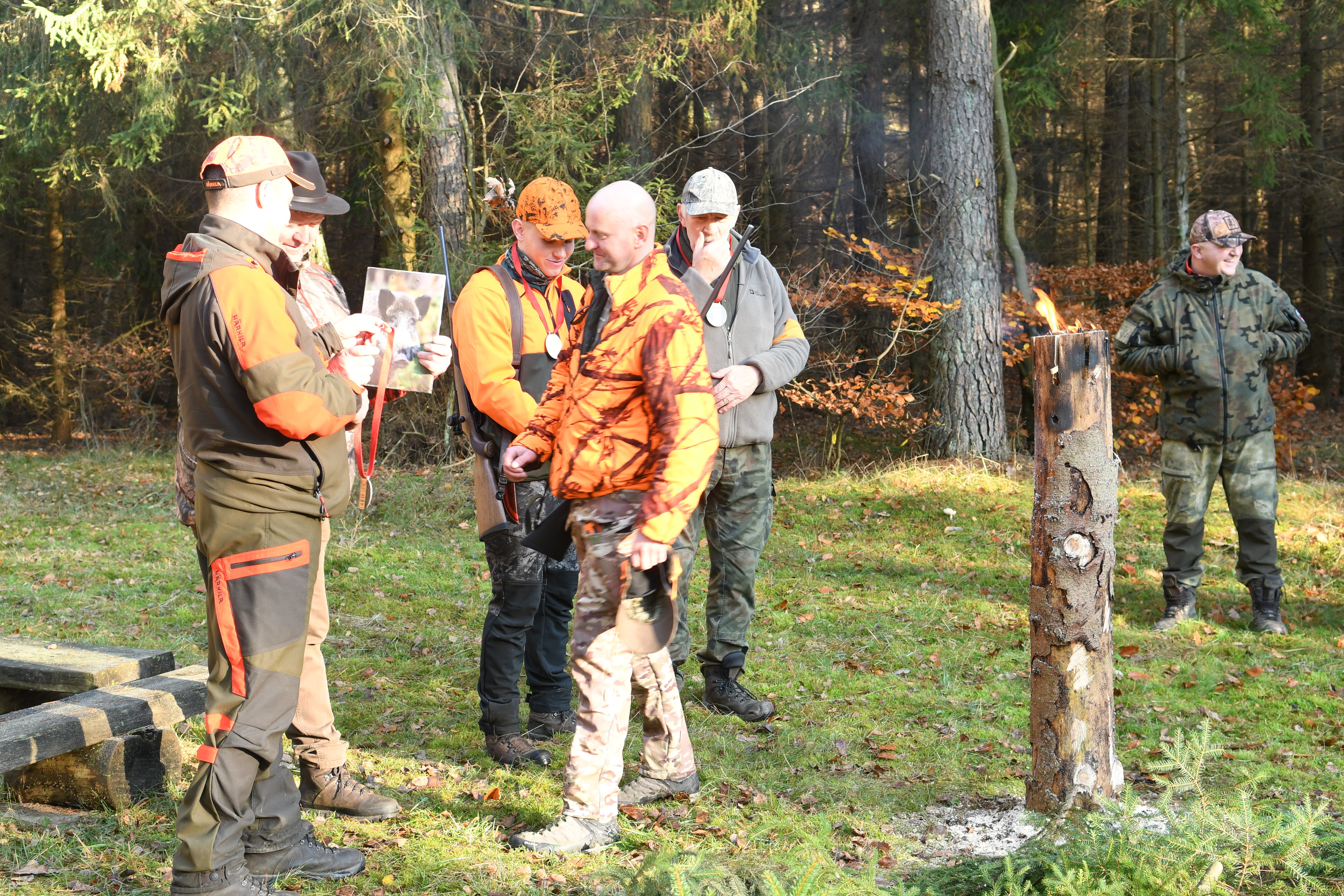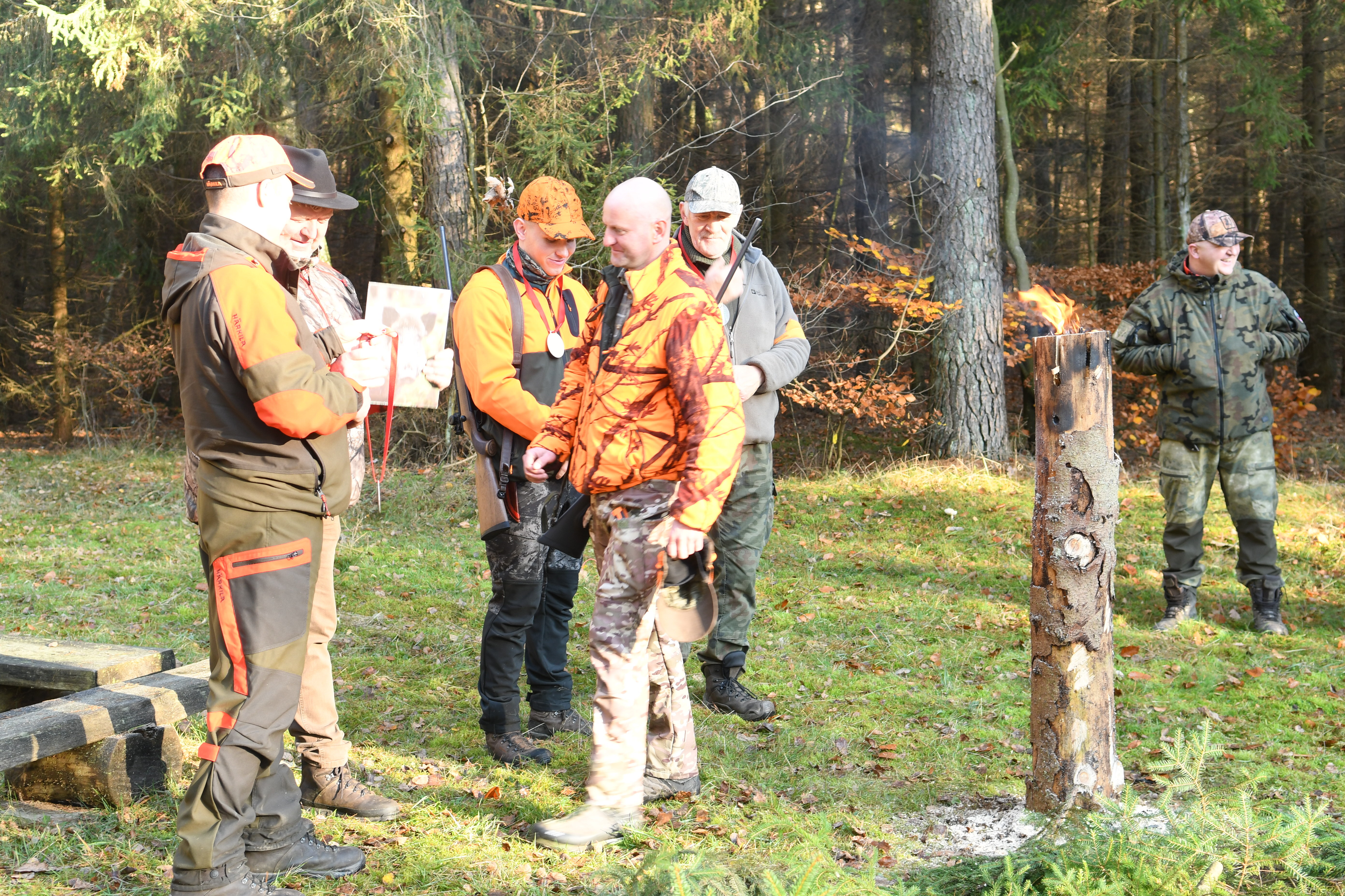 3 listopada myśliwi obchodzą coroczne święto swojego patrona św. Huberta. Hubertus to szczególnie ważny dzień dla myśliwych, jeźdźców i leśników. Tego dnia w naszym Kole Łowieckim jak co roku odbyło się polowanie zbiorowe. Polowanie rozpoczęło się od przedstawienia i powitania gości, koleżanek, kolegów oraz omówienia zasad bezpieczeństwa na polowaniu, gdzie w naszym Kole kładziemy bardzo duży nacisk na tego typu zagadnienia. Po omówieniu przez osobę prowadzącą polowanie reszty zagadnień ruszyliśmy na polowanie. Polowanie przebiegło w miłej i koleżeńskiej atmosferze, można było porozmawiać, powspominać i spędzić ze sobą mile dzień. Po Pokocie wszyscy razem usiedliśmy przy ognisku, aby zjeść ciepły posiłek.