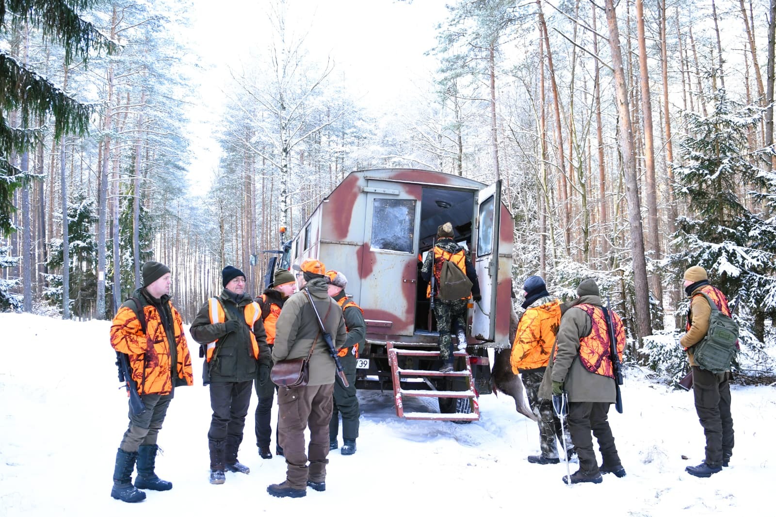 W dniu 13.01.2024 r. odbyło polowanie zbiorowe. W polowaniu uczestniczyli myśliwi naszego Koła "Jeleń", a także rezydenci oraz stażyści. Polowaniu towarzyszyła zimowa aura. Polowanie przebiegło bezpiecznie, a zakończyło się biesiadą i dobrym posiłkiem.